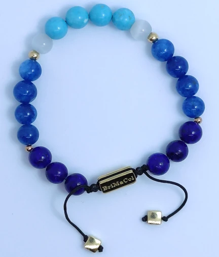 Esta pulsera contiene;Lapislázuli: potencia la comunicación, despierta la mente a una conciencia superior, atrae la fama y fortuna; Aguamarina: reduce el estrés, relaja la mente, brinda seguridad en los viajes.