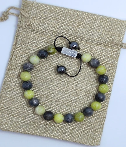 Esta pulsera contiene;Jade: estimula las ideas, libera pensamientos negativos y alivia la mente, estabiliza la personalidad;Labradorita: disipa miedos e inseguridades, despierta talentos ocultos, calma la mente hiperactiva y energetiza la imaginación.
