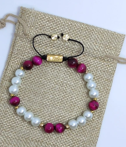Esta pulsera contiene Rose Tiger Eye: mejora la concentración, aleja la ansiedad y atrae el optimismo.