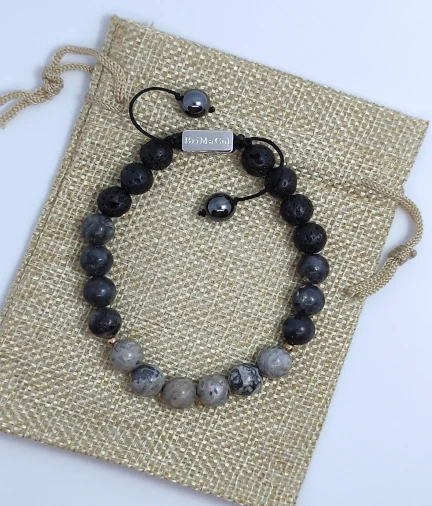 Esta pulsera contiene;Lava Negra: ayuda a eliminar la ira, el rencor y los malos recuerdos, ofrece estabilidad emocional;Labradorita: disipa miedos e inseguridades, despierta talentos ocultos, calma la mente hiperactiva y energetiza la imaginación.